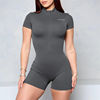 2025 mulheres bum macacão de uma peça terno com zíper manga curta ginásio push up roupas de treino de fitness curto bodysuit roupas esportivas