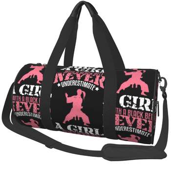Menina com faixa preta artes marciais karatê taekwondo bolsas esportivas viagem bolsa de ginástica bolsas grandes gráficas bolsa de fitness feminina