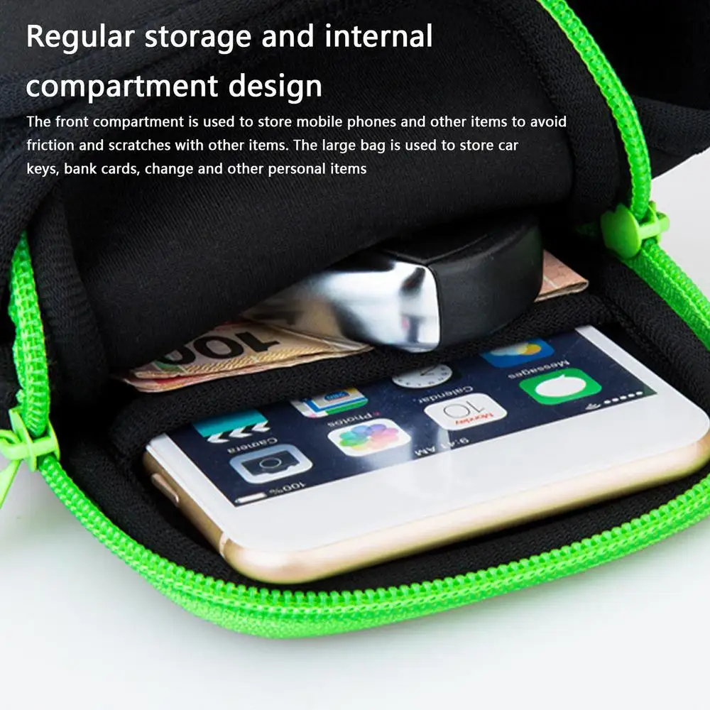 3.Double Zipper: O suporte do telefone braçadeira tem um design de zíper duplo que lhe dá acesso fácil e suave ao seu telefone. Os zíperes são duráveis e seguros, e protegem seu telefone de cair.