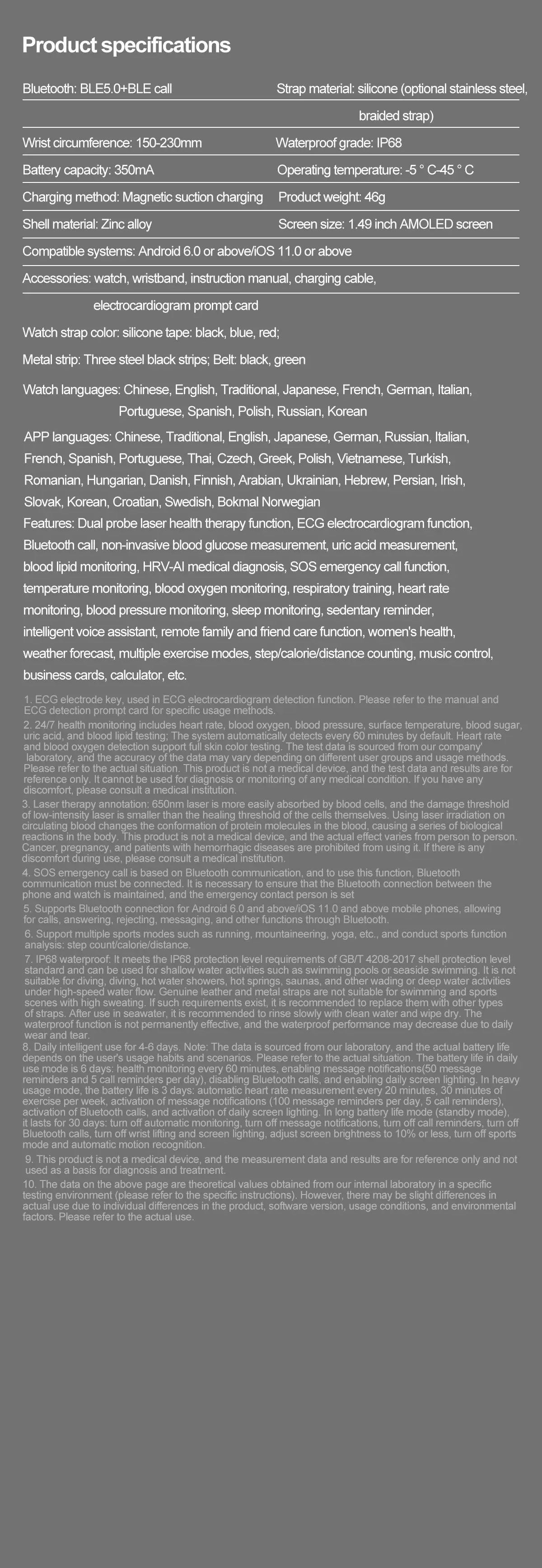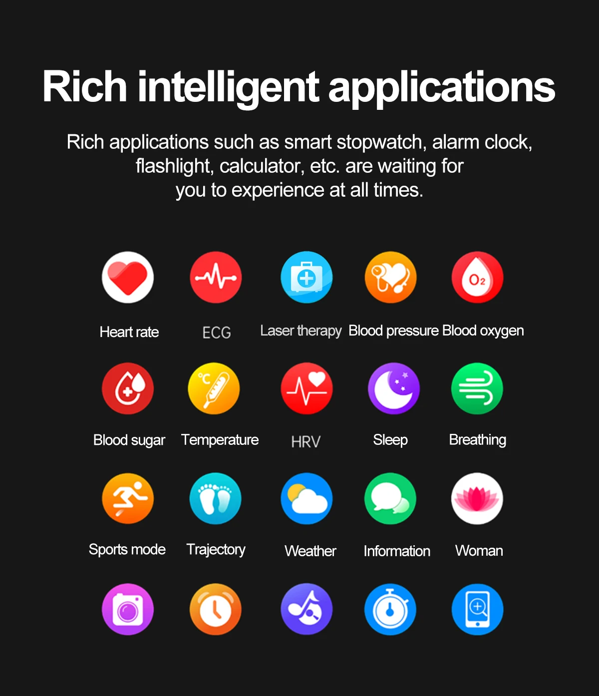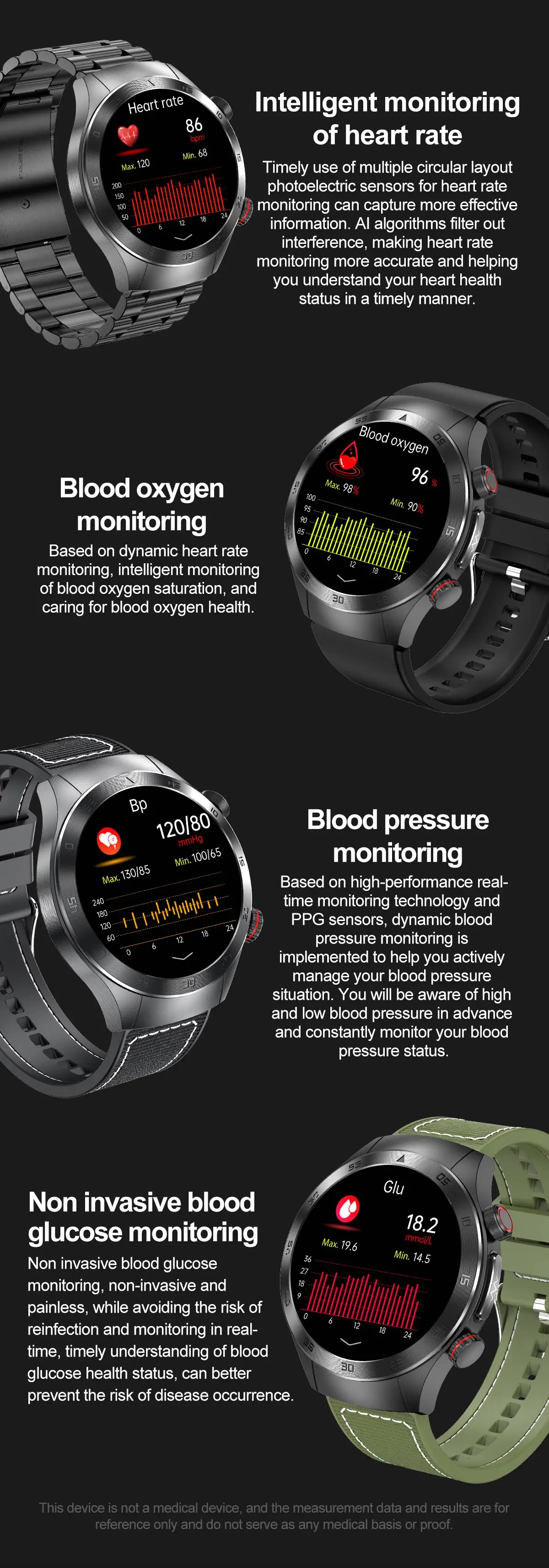 Gadgets Bluetooth Call Smart Watch para homens e mulheres, Health Smartwatch, Monitoramento de Saúde, Açúcar no Sangue, Gordura, HRV, ECG, PPG, Novo, 2024, Medical Grade