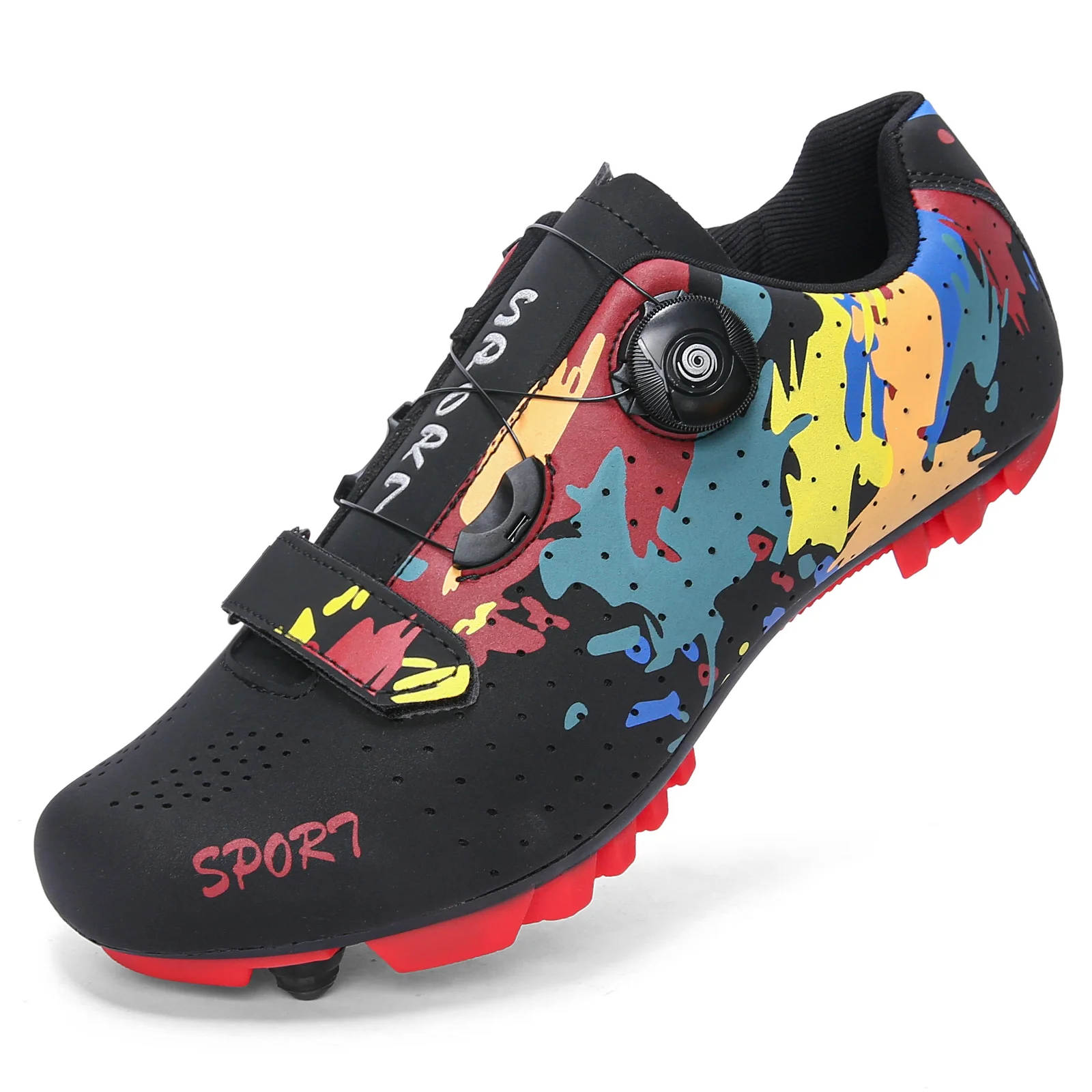 Calçado masculino de mountain bike, MTB com fivela de catraca rápida, ciclismo indoor, compatível com grampo de 2 parafusos