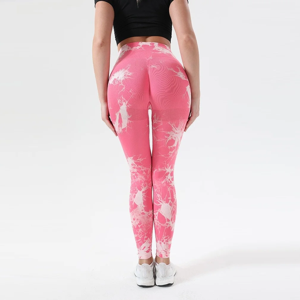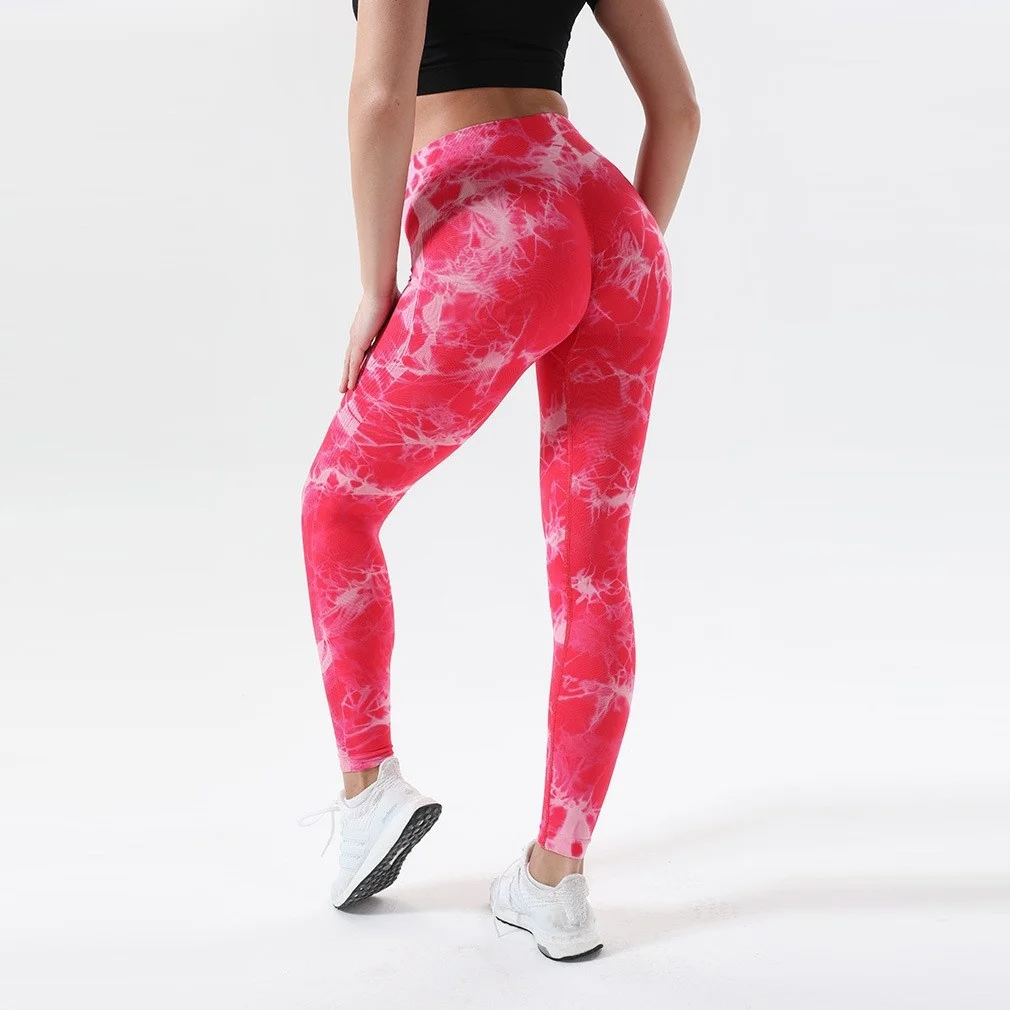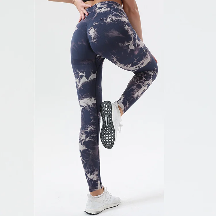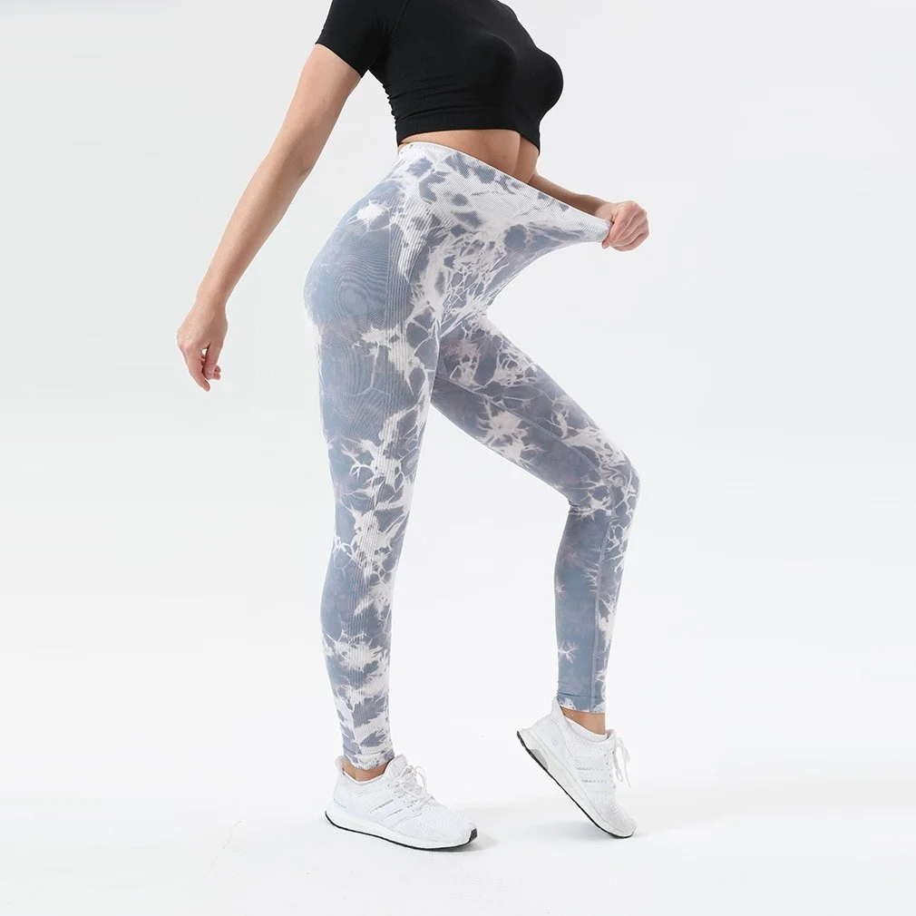 Correndo calças femininas tie dye print fitness sem costura leggings esportes controle de barriga cintura alta ruched calças elásticas altas ginásio