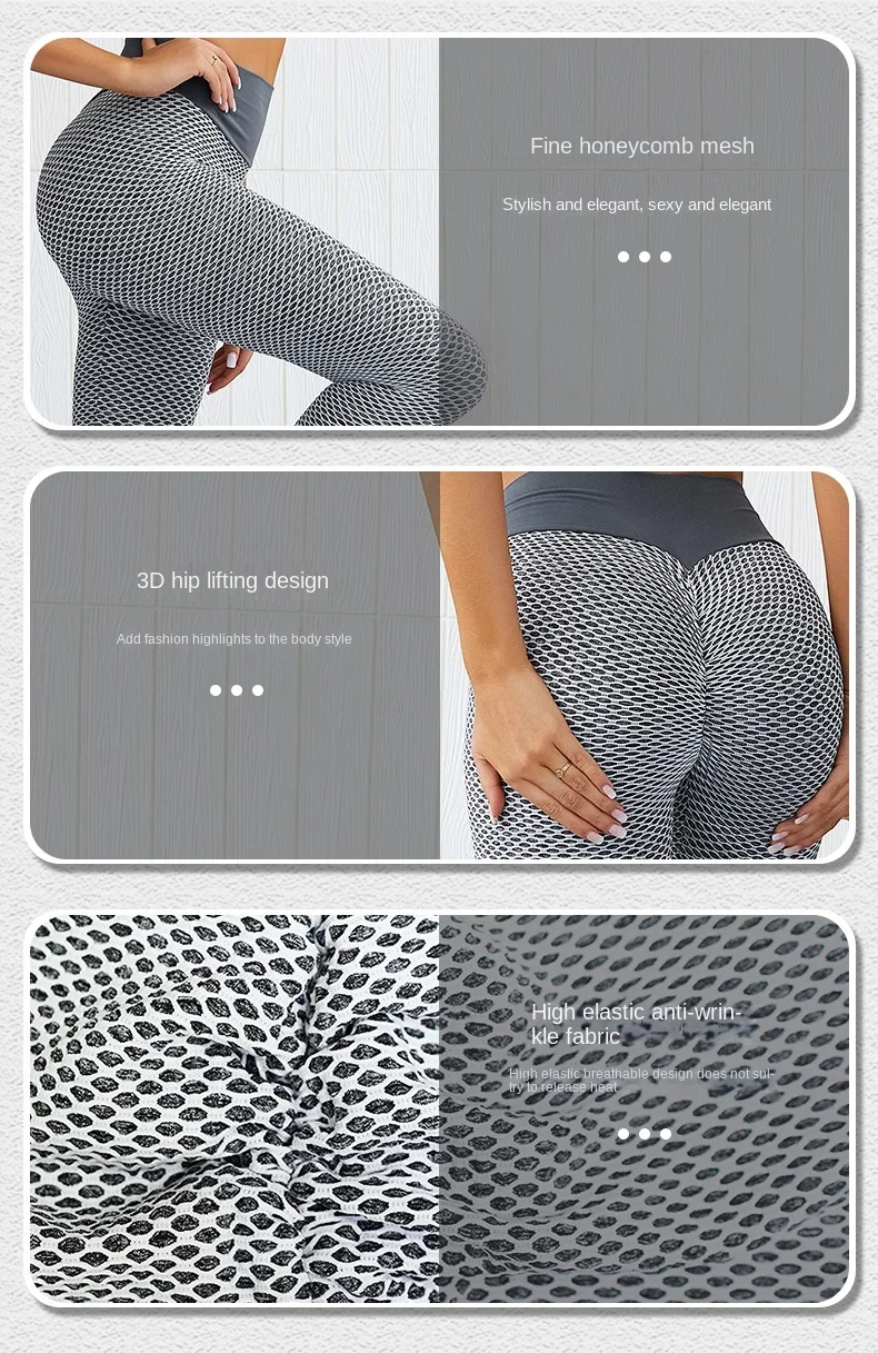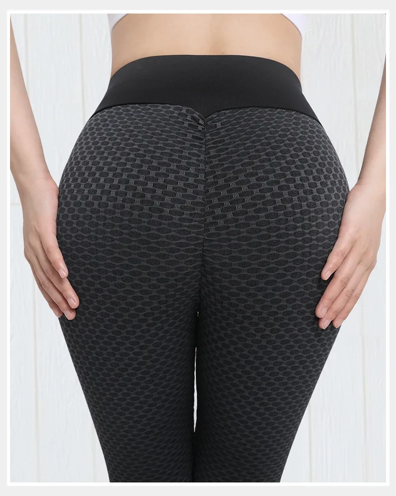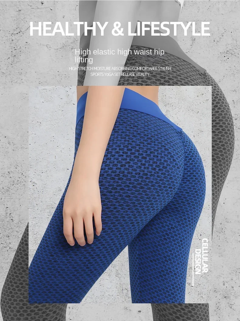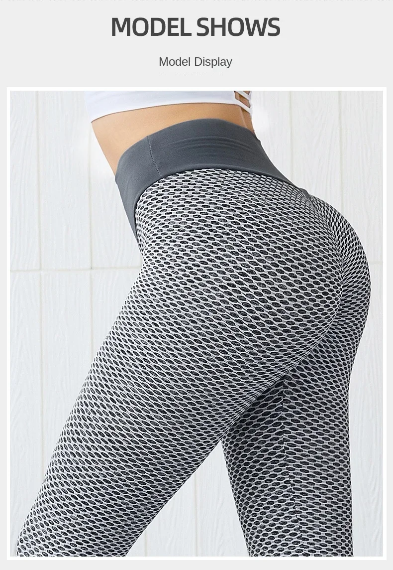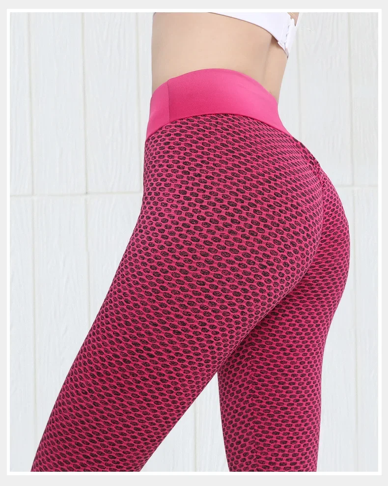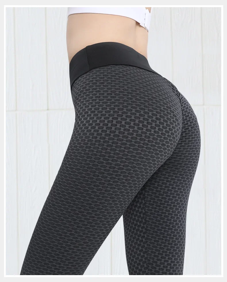 Calças de Yoga de Cintura Alta para Mulheres, Jacquard Sports Calças Apertadas, Large Hip Lifting Fitness Pants, Peach Hips