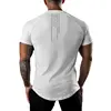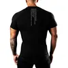 Camiseta masculina de meia manga corrida, pescoço traseiro, estampada em letras, ginástica fitness, músculo treino, manga curta, verão