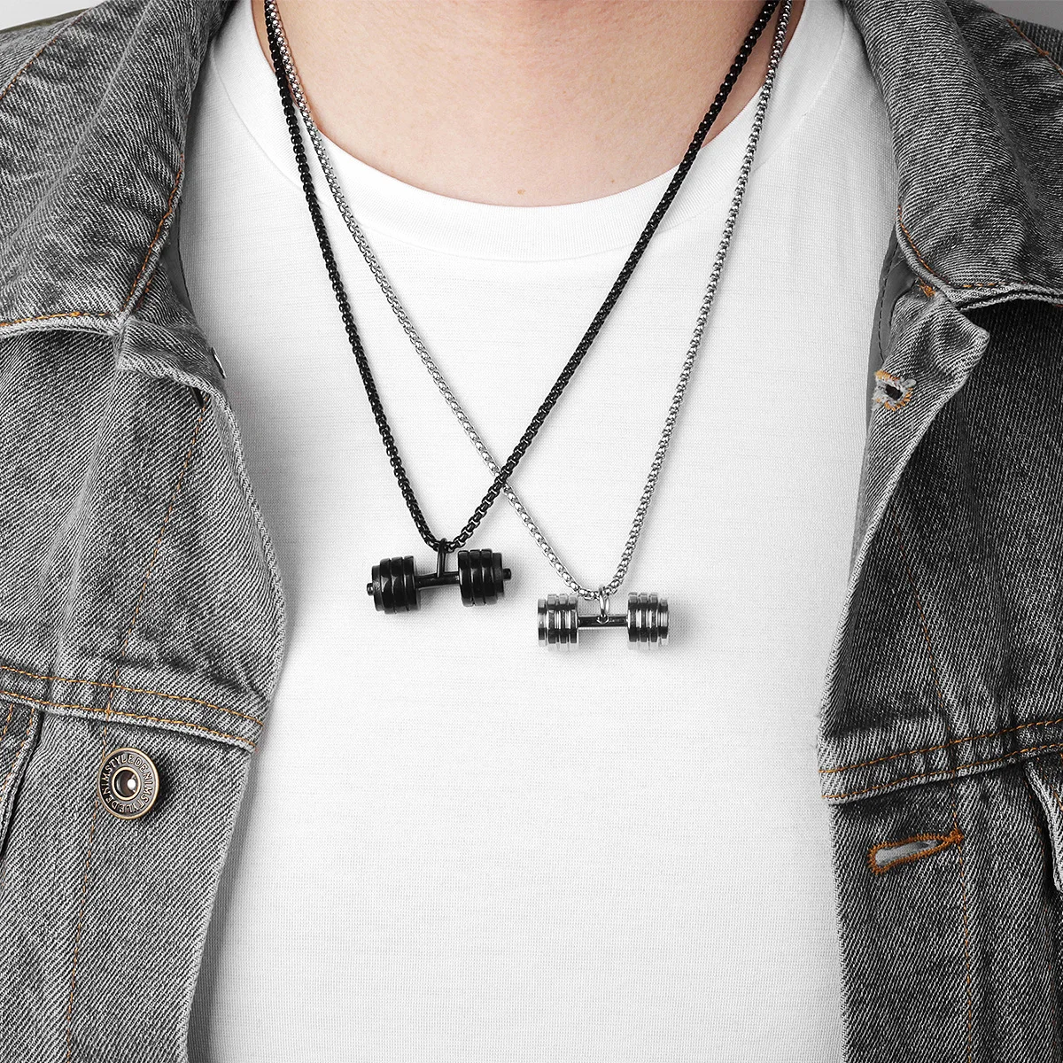 Titânio aço haltere pingente para homens, colar Barbell, dominador muscular, lazer esportes jóias, ginásio Fitness equipamentos