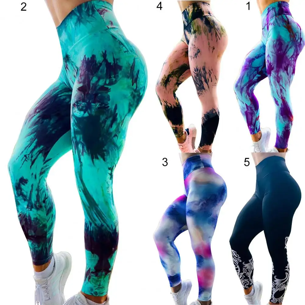 Impressão de corante de gravata leggings de fitness controle de barriga mulheres cintura alta ruched alta elástica yoga leggings activewear pantalones de mujer