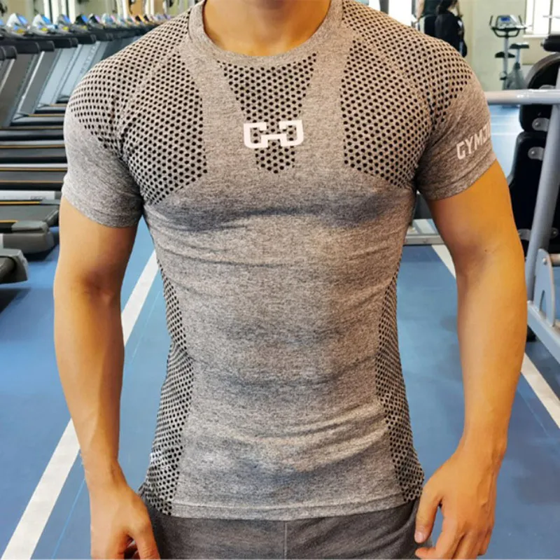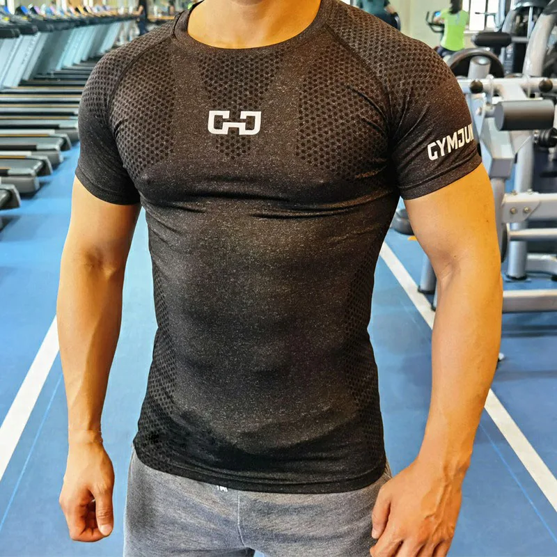 Esporte de secagem rápida camiseta masculina, manga curta apertada, camiseta masculina de compressão ginástica, camiseta musculação, fitness