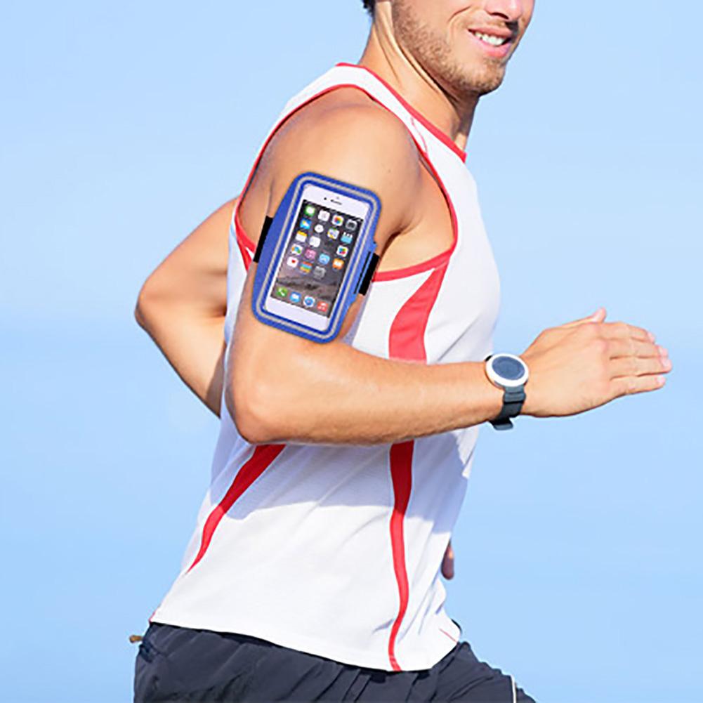 O saco do braço pode atuar como um suporte do telefone ao oferecer proteção total e permitir o acesso fácil à funcionalidade do écran sensível do seu telefone e ao fone de ouvido jack.
