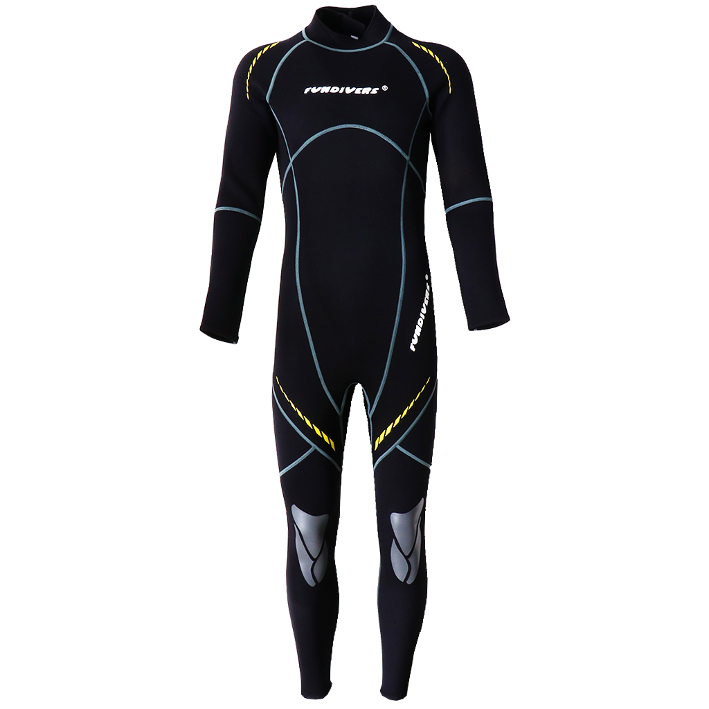 O maiô de comprimento total fornece proteção total do corpo contra os elementos encontrados ao nadar, mergulhar e mergulhar.