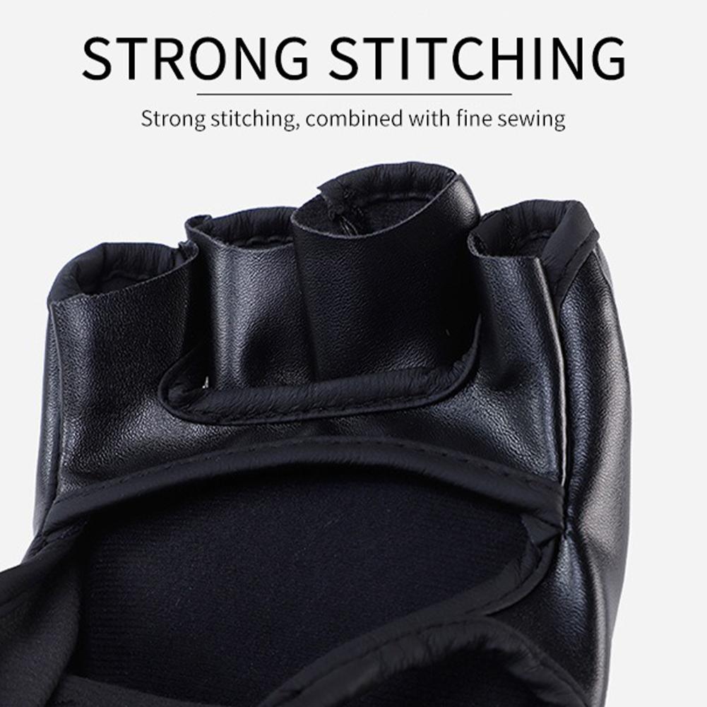1. High-Quality Material: Our half-finger boxing gloves are made from synthetic leather, ensuring durability and long-lasting performance. The material is resistant to wear and tear, making it ideal for intense training sessions and heavy bag workouts.