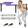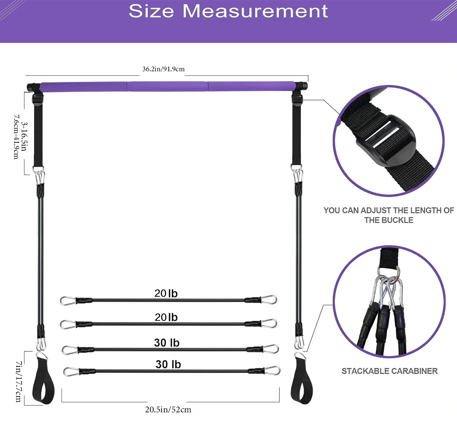 Kit de Pilates Bar com bandas de resistência, 3 seções Pilates Bar, Bandas empilháveis, Equipamento de treino para pernas, quadril, cintura e braço, ex