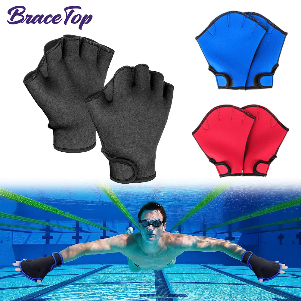 1. Soft Webbed Aqua Gloves: neoprene de alta qualidade, grande resistência à natação, os materiais tornam mais adequado à pele, permite manusear uma placa, suba uma escada e trabalhe com seus óculos sem tirá-los na piscina.
