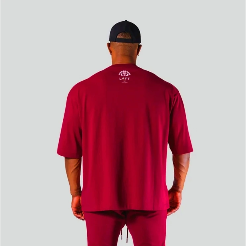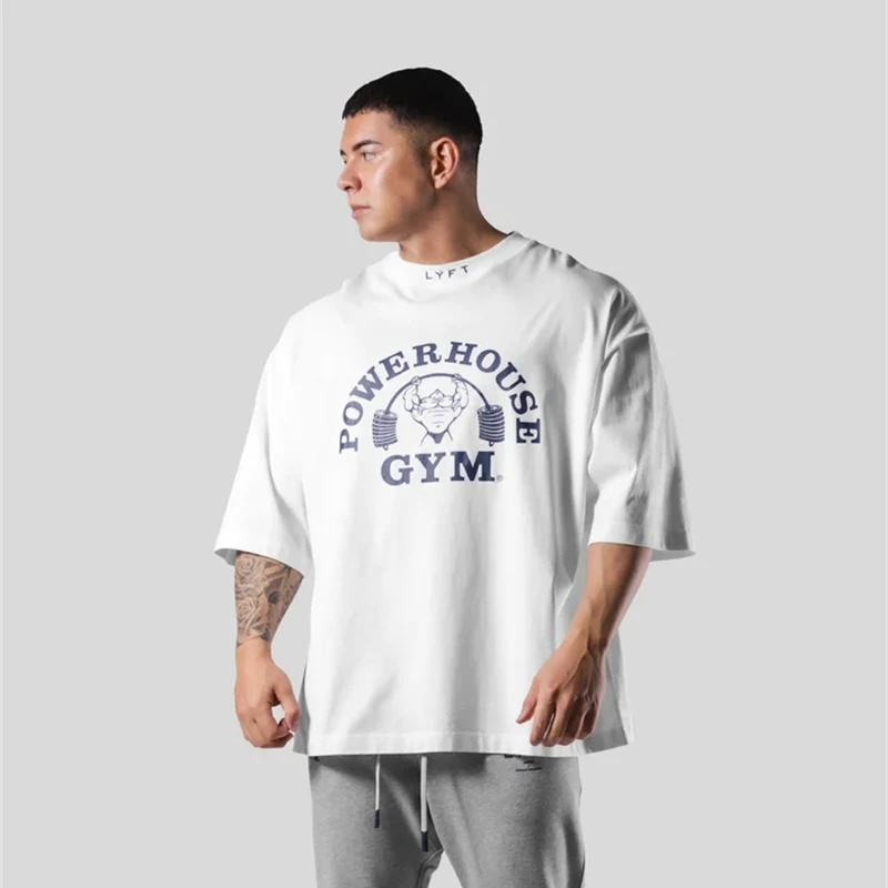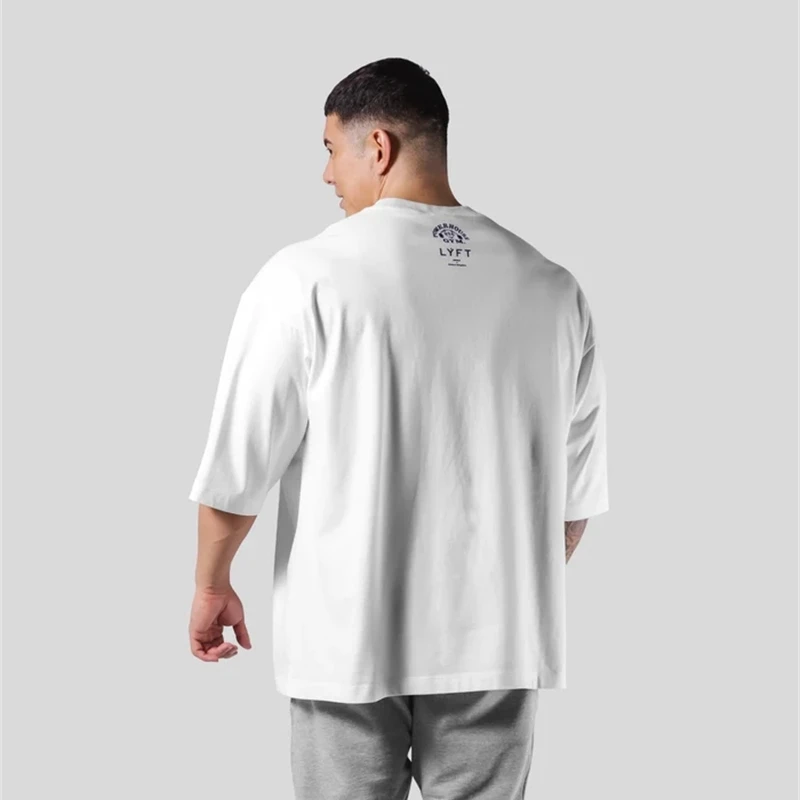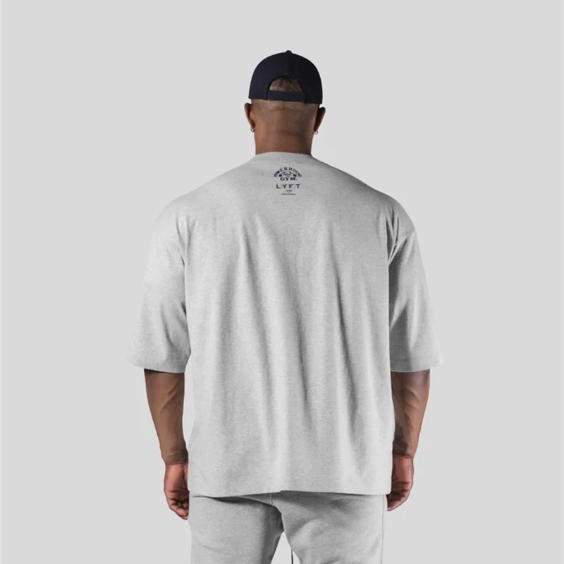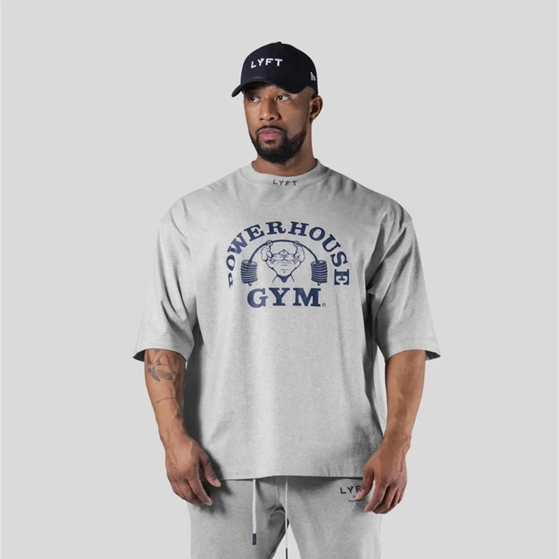 LYFT-camiseta estampada solta de musculação masculina, camiseta masculina de treinamento de jogging, camisa de fitness, algodão esportivo, academia de fitness, conjunto, verão