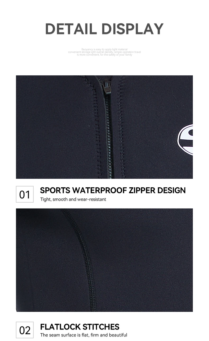 Tecido macio, colarinho apertado, reduzir o atrito e manter quente debaixo d’água