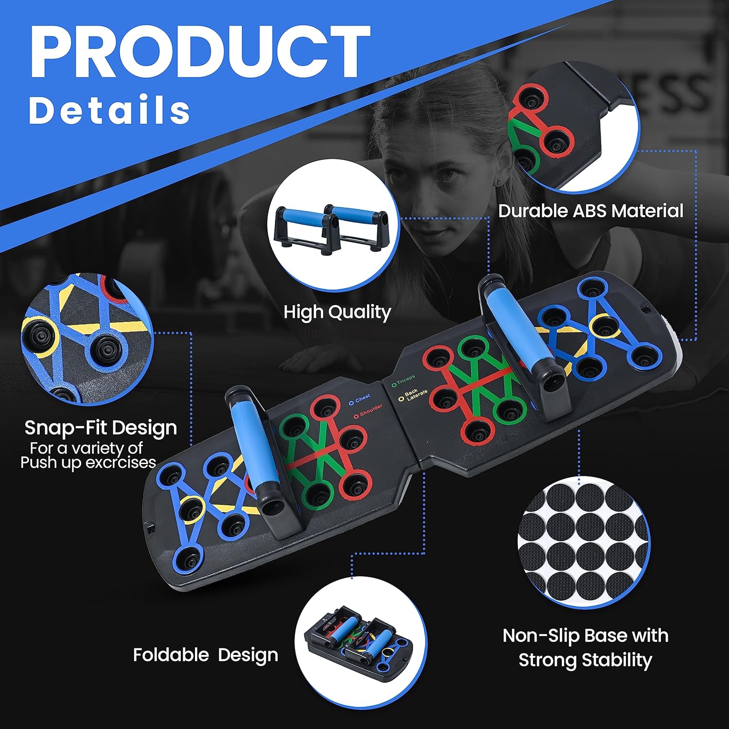 1. As placas codificadas por cores diferentes do impulso centram-se sobre os músculos a ser exercised.2. O robusto sistema push plate tem várias posições e ângulos para moldar e maximizar o contorno da parte superior do corpo.3. Queimar calorias e aumentar a força através deste sistema inovador e levá-lo para completar a força do corpo e treinamento físico.4. Portátil e fácil de montar e armazenar.5. Alça antiderrapante acolchoada e de alta qualidade.
